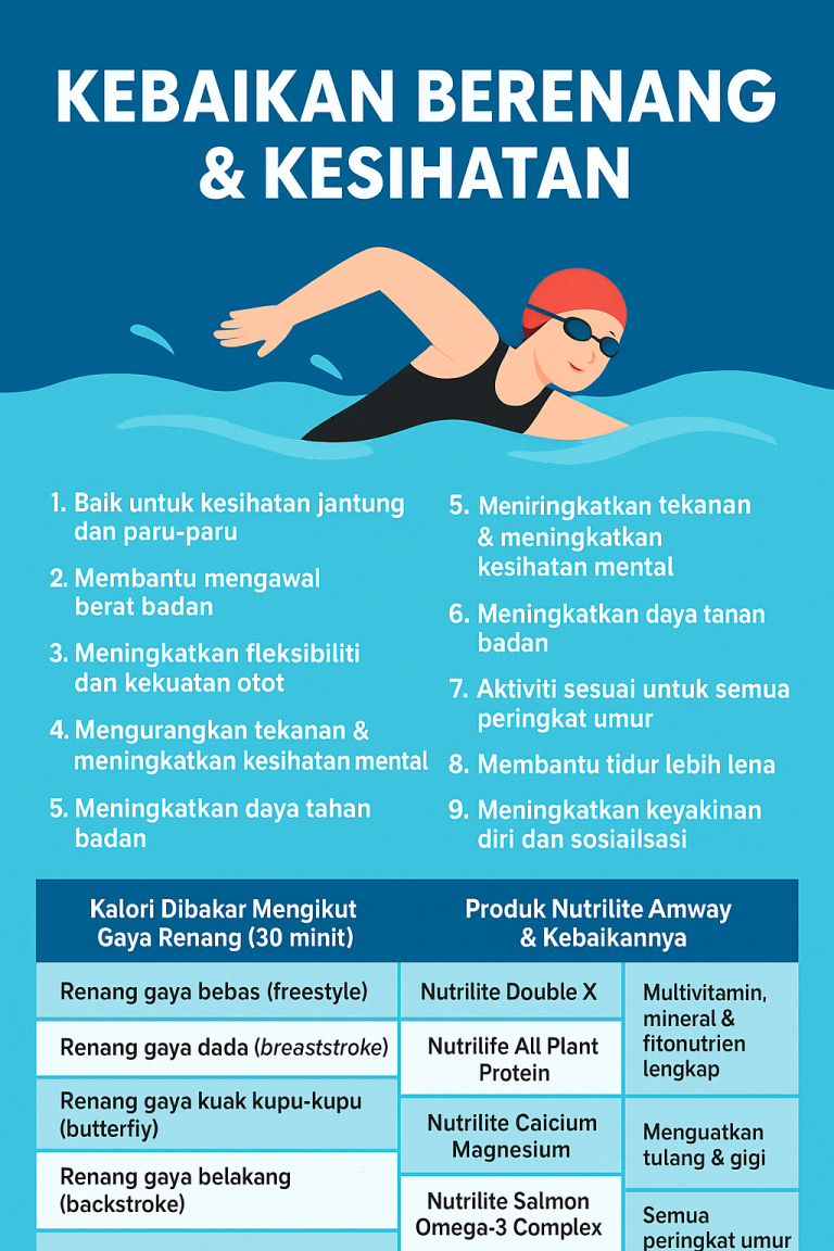 Mungkin ramai yang sudah mengetahui pelbagai kebaikan berenang bila dikaitkan dengan kesihatan untuk seisi keluarga. Aktiviti renang bukan sahaja menguatkan